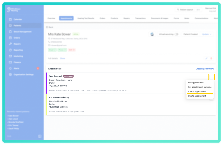 You may need to permanently remove an appointment from the patient's record. This is different from cancelling an appointment, as deleted appointments are no longer visible in the system.
