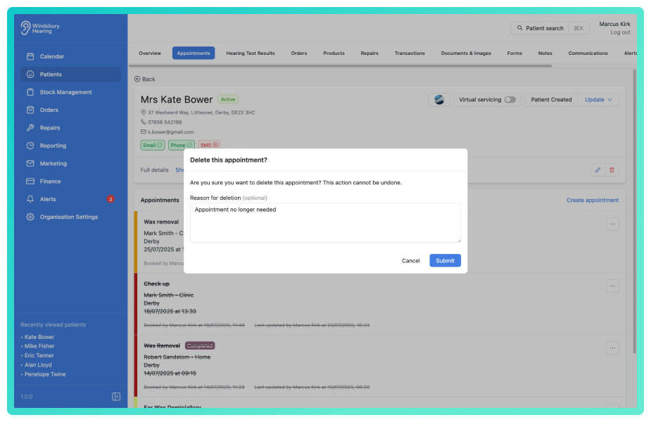 Warning: Once an appointment has been deleted this action cannot be undone. If you wish to keep a record of the appointment without it being active, consider cancelling the appointment.