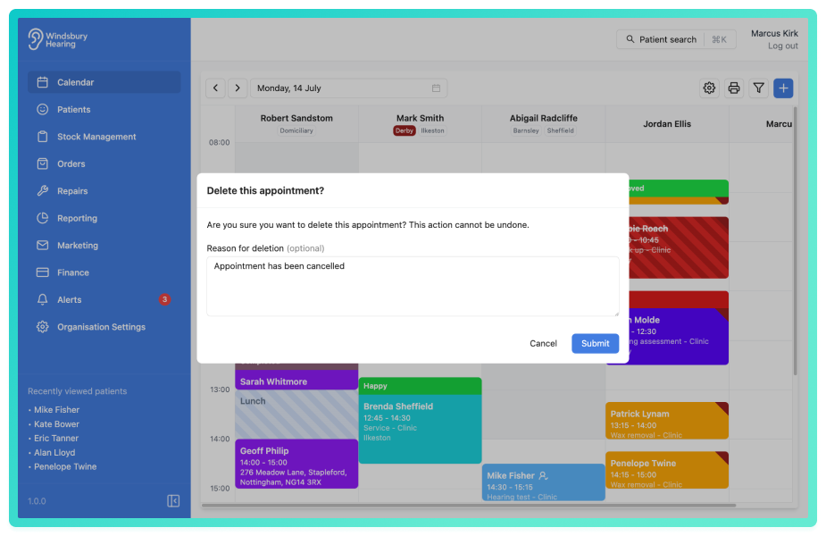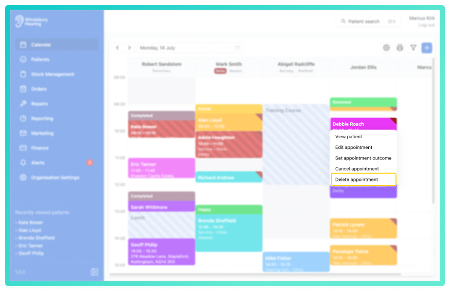 You may need to permanently remove an appointment from the patient's records. This is different from cancelling an appointment, as deleted appointments are no longer visible.