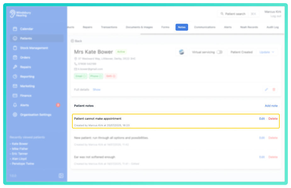 If a note has been added to a cancellation or deletion. It will automatically be added to the patient notes in the patient dashboard.
