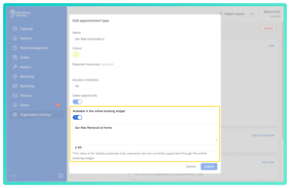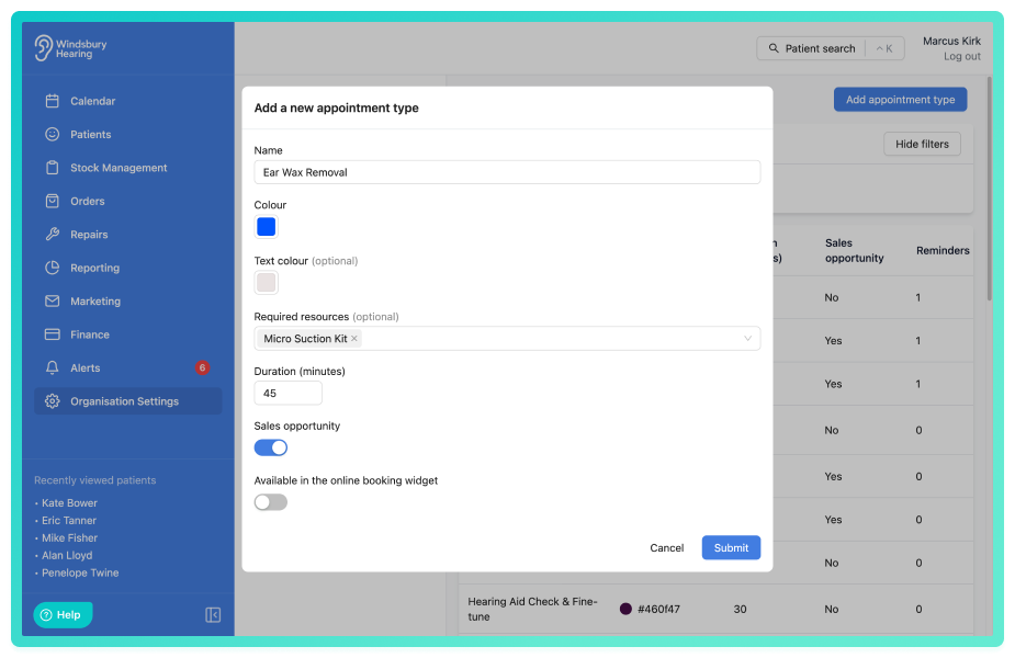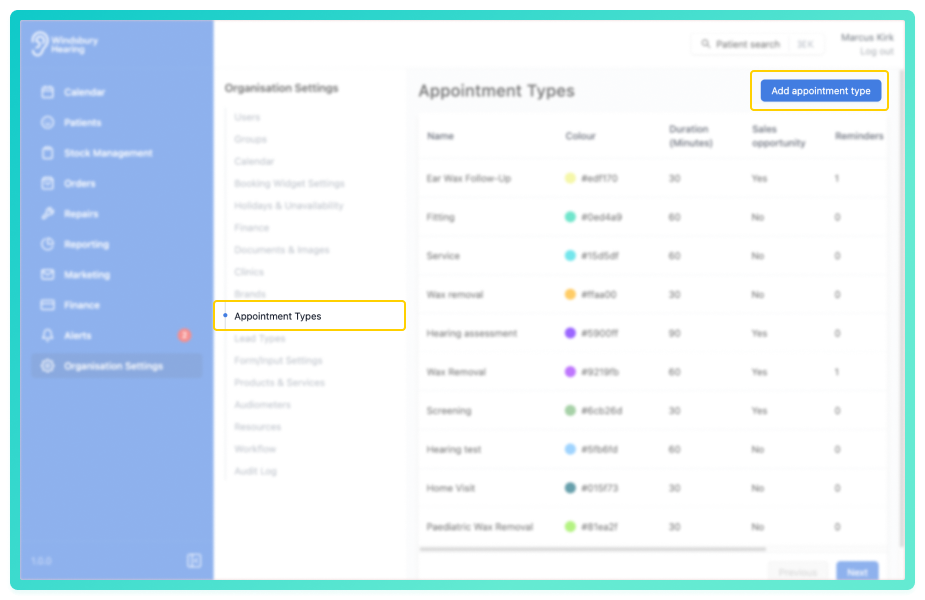 Choose a colour for the Appointment Type to make it easily identifiable in the calendar.