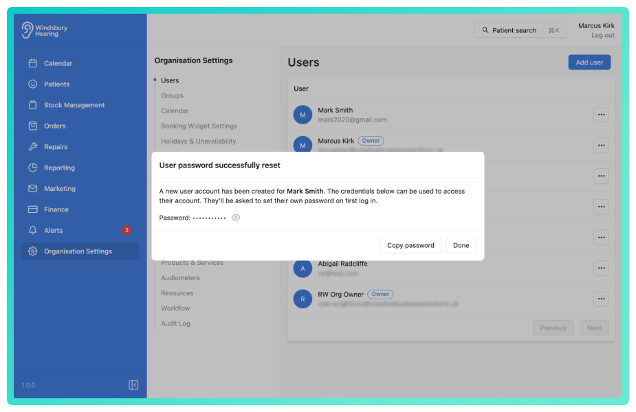 You'll need to securely provide them with the temporary password generated by HearLink. Once they've set their new password. they'll be able to access the system based on their permissions.