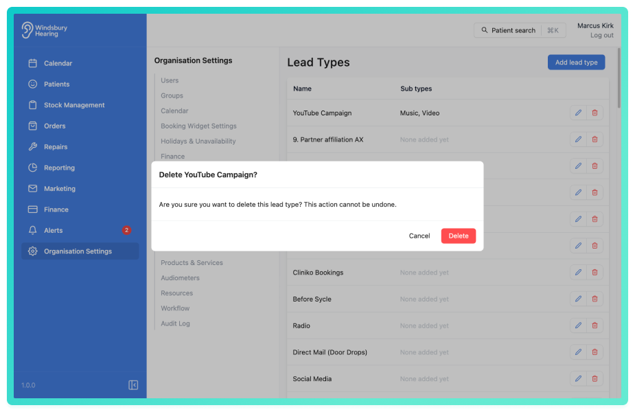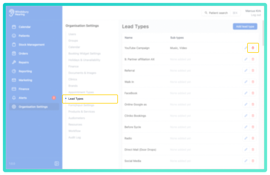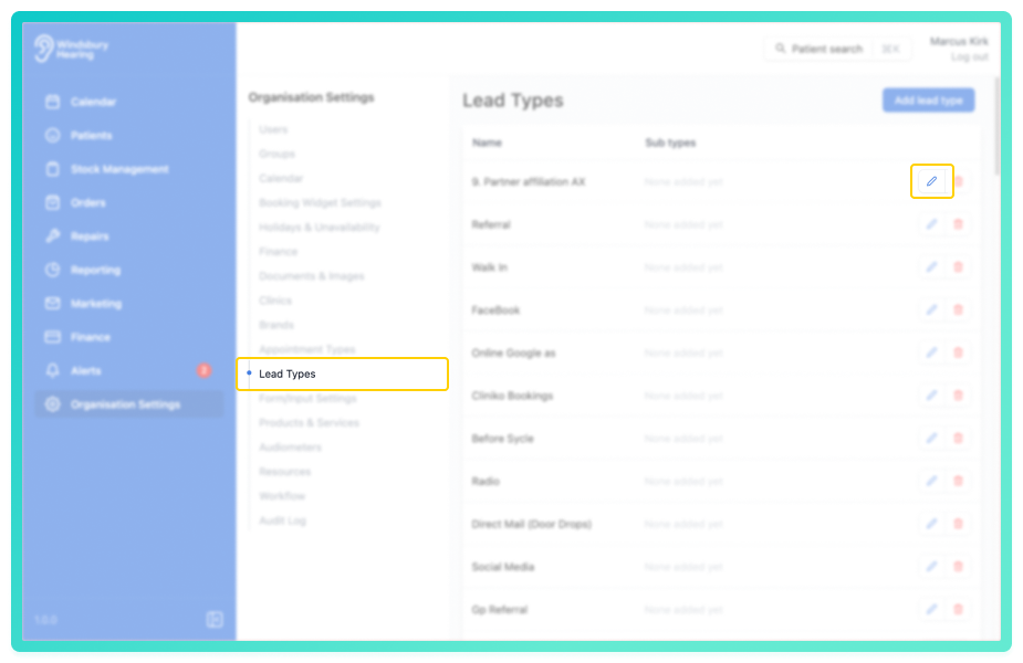 Your organisation's referral sources may change over time. Lead types can be updated to reflect new categories or removed if no longer needed.