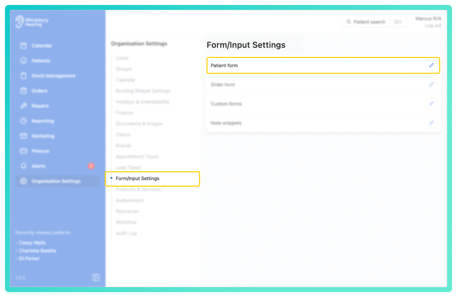 Only users with the correct permissions can edit a patient form. If you think you should have permission to perform such an action please contact the organisation owner.Edit the patient form
