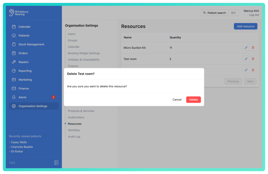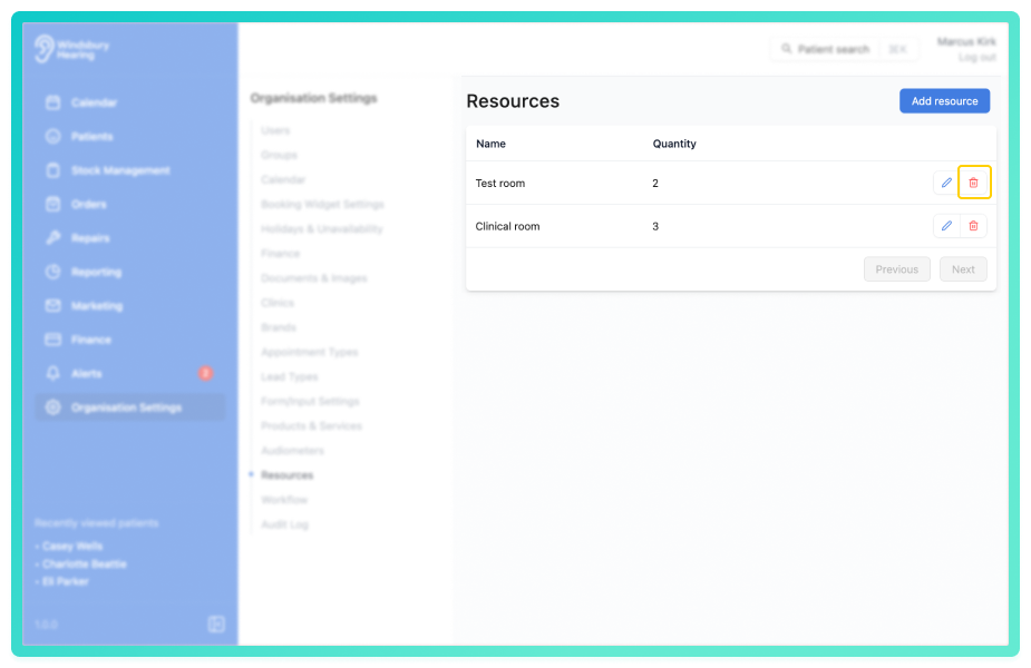 You can update or remove resources that are no longer needed by your organisation. These changes ensure that your scheduling setup is accurate and up to date.