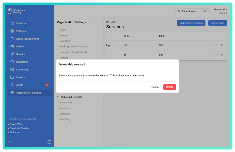 Warning: Once a service has been deleted this action cannot be undone. Please proceed with caution!
