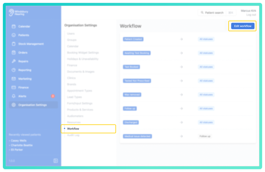 - Locate and click the Workflow section of the settings.