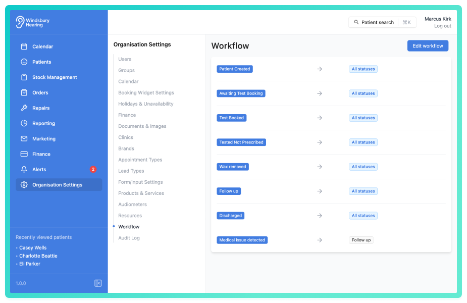 The Workflow in HearLink helps your organisation manage patient progress from their first interaction through to final outcomes. It defines the various statuses a patient can be in and how they move between those statuses. HearLink also provides a secondary workflow that's linked to the primary for managing more complex patient journeys and processes. This ensures that staff follow a consistent process while also offering the flexibility to match your clinic's specific needs.