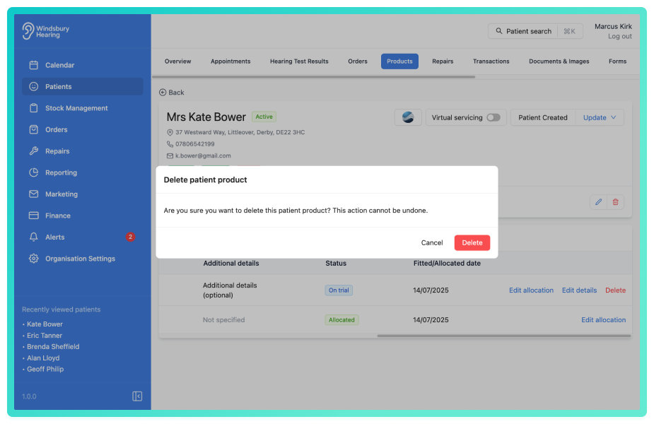 • Click Delete to confirm and delete the product.