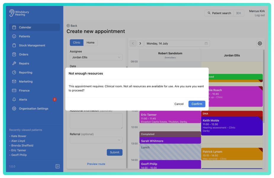 - When booking an appointment the HearLink system checks if the required resources are available.