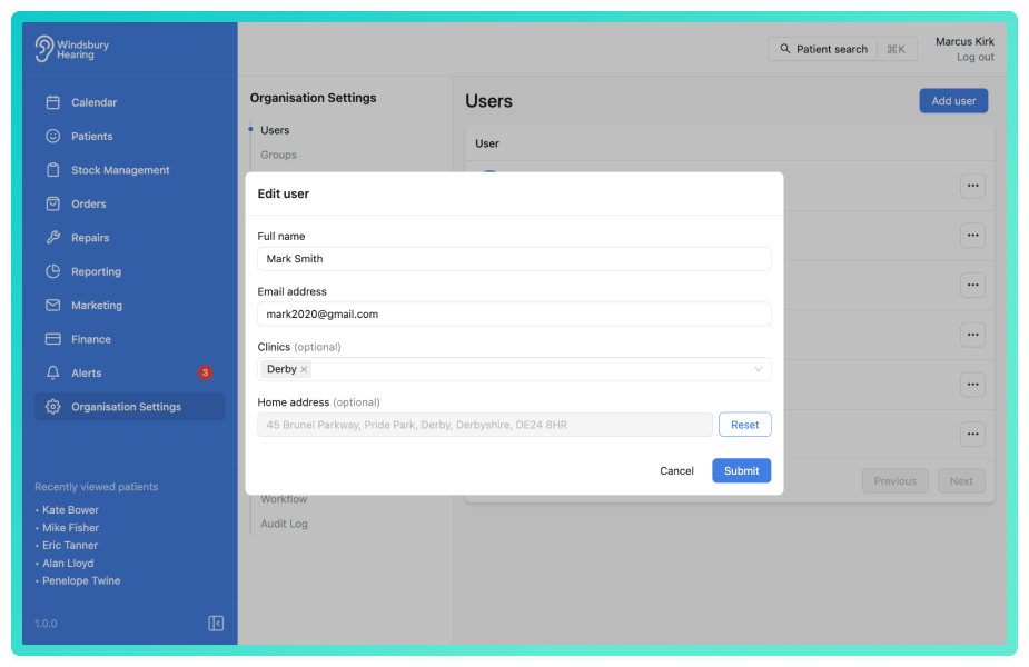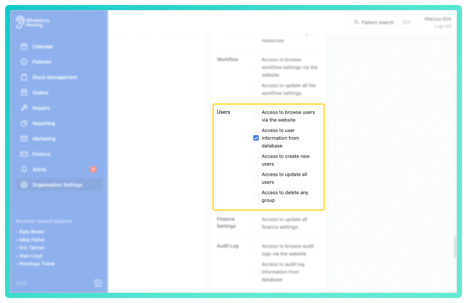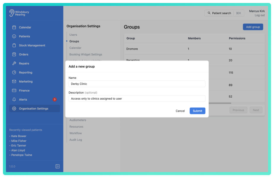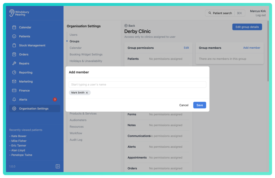 Some users in your organisation may only need access to specific clinics, such as a clinician working at a single location. You can control which clinics each user can view by using a combination of different permissions in groups.