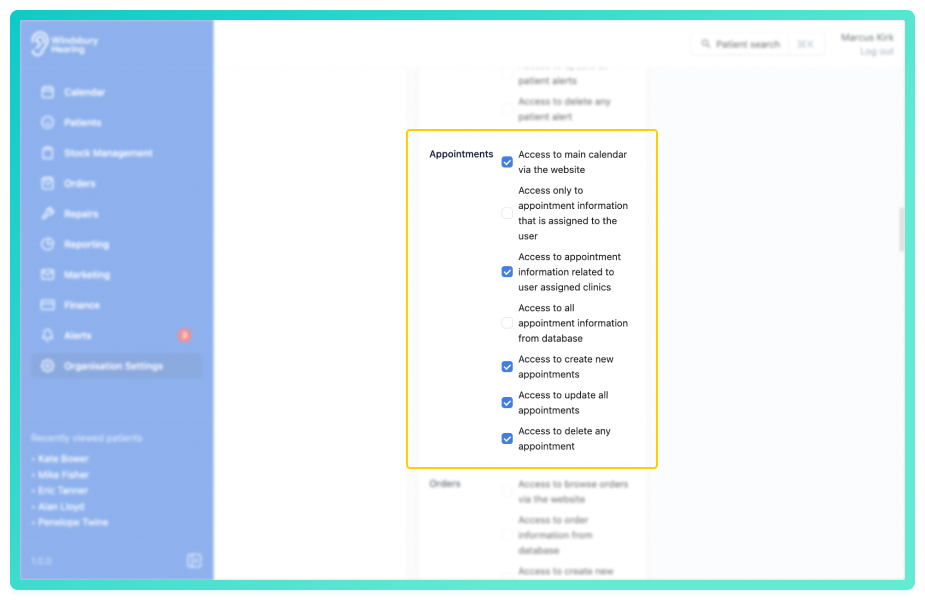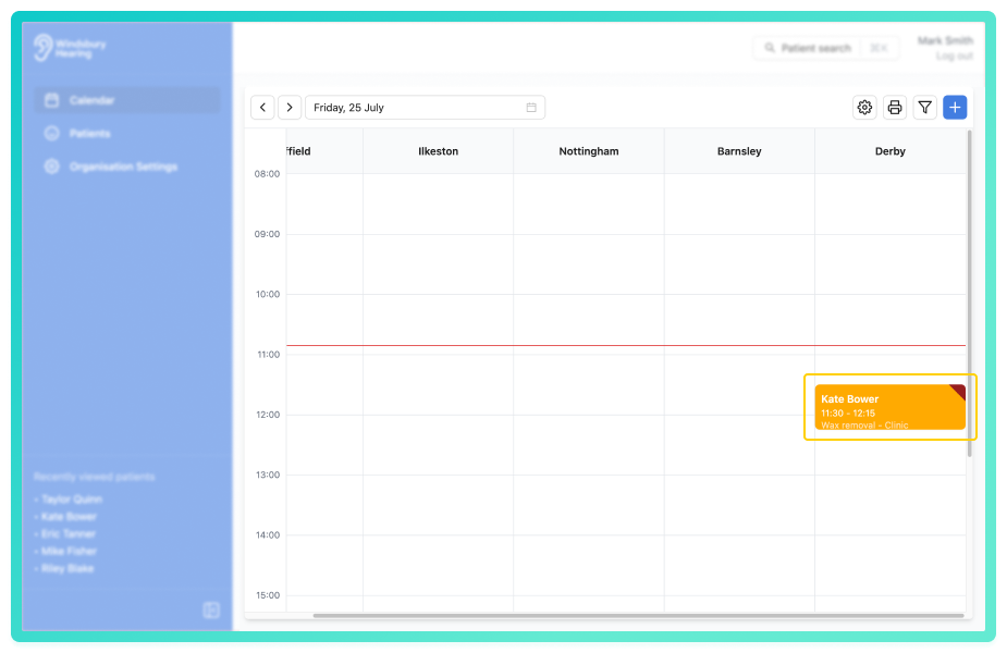 The organisation only wants Mark to view appointments at the Derby clinic. Following the steps above we can restrict Mark's access to only see appointments at the clinic he works at.