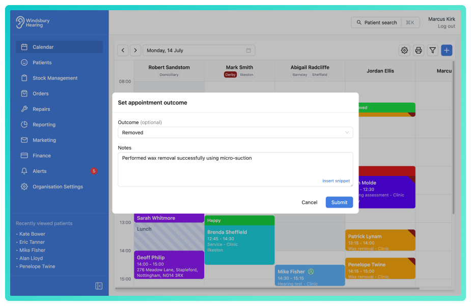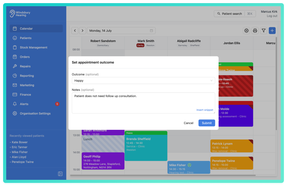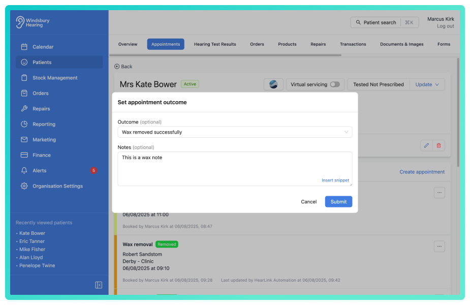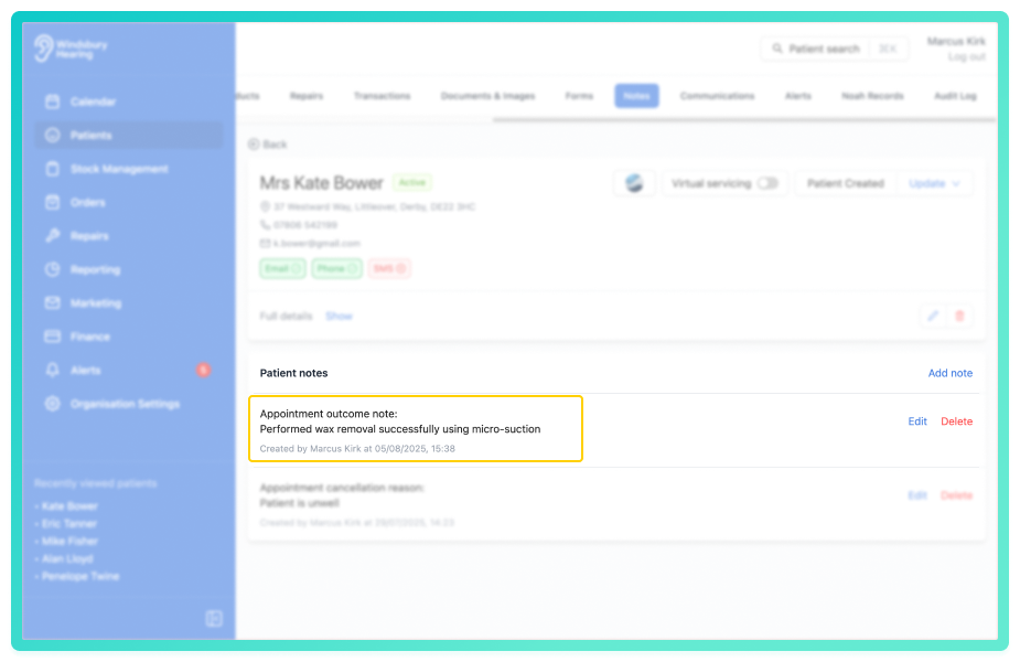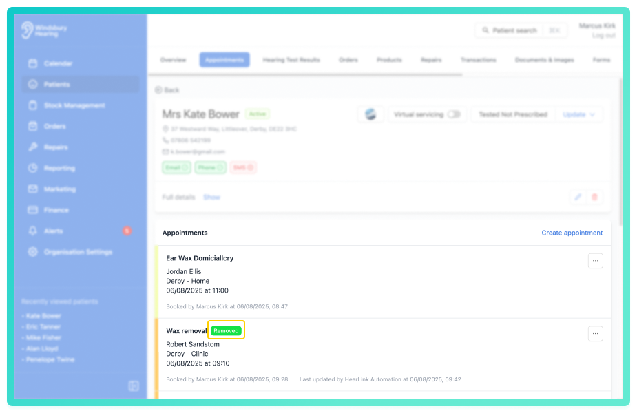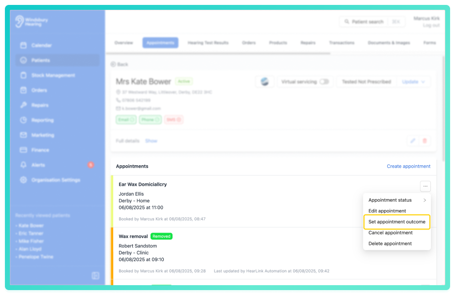 • If an Outcome is linked to this status and the appointment type, the Outcome will be automatically applied to the relevant appointment.