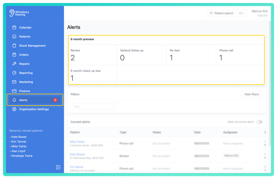 In the alerts overview there is a section to preview upcoming alerts in the next six months. You can choose to view these previews by type in more detail.
