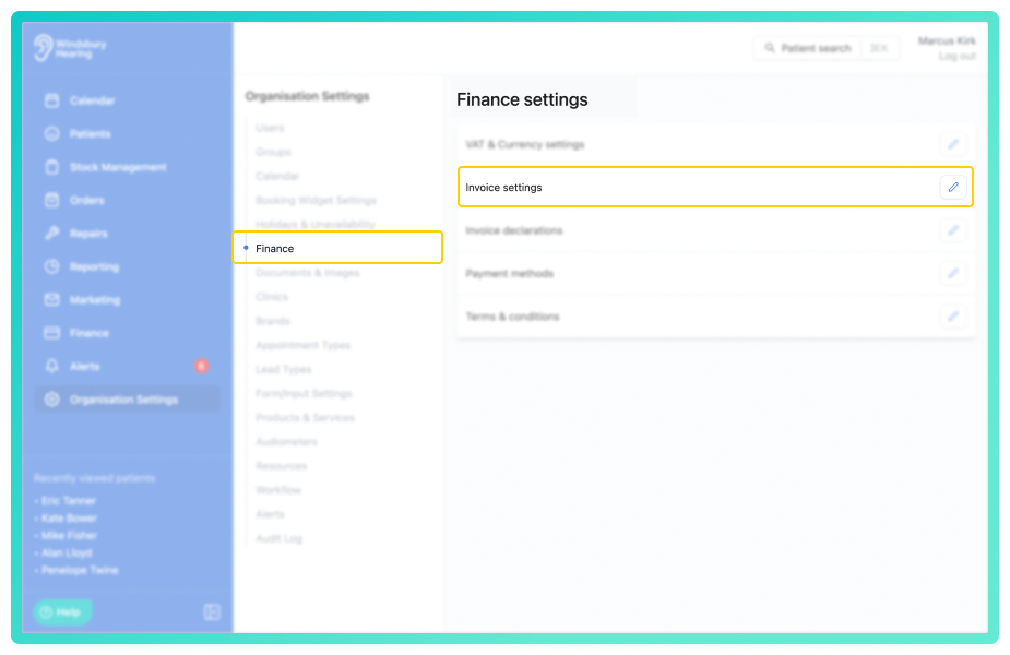 You can customise your organisation's invoice settings to align with your invoicing and regional requirements. This ensures invoices are tailored to your clinics.