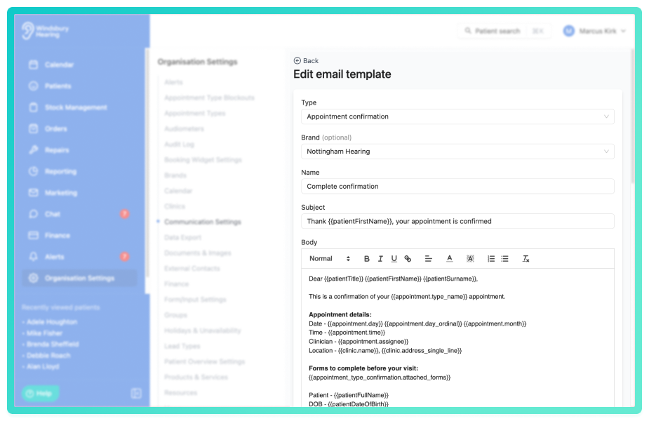 For detailed information on using Email templates in appointment types and the patient dashboard, see these articles.