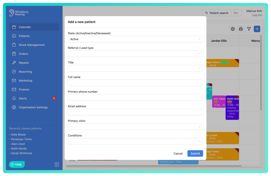 The add a new patient form, when creating an appointment, will only include the mandatory fields you set in the patient form settings. This ensures you can add a new patient quickly, create the appointment and fill in the patient optional details at a later time.