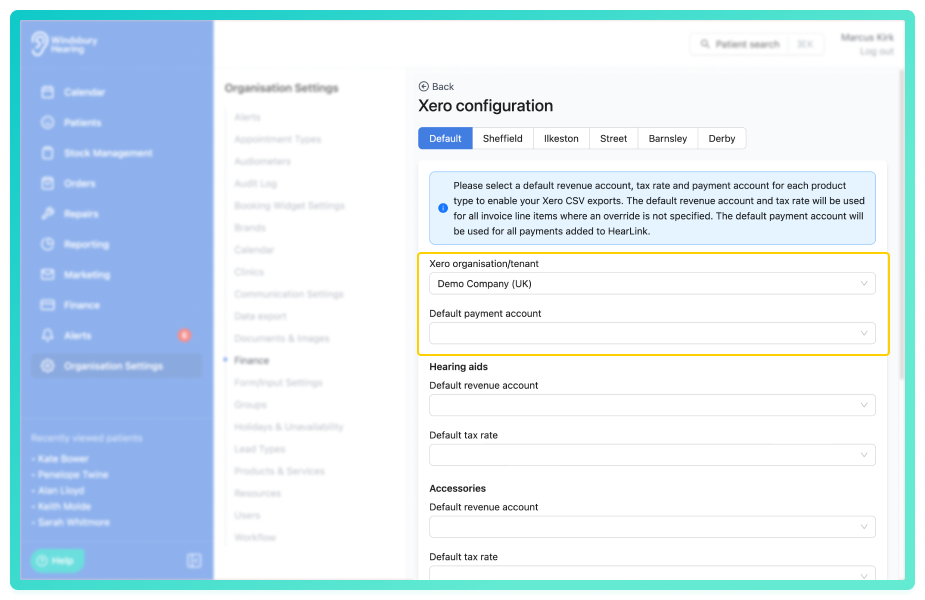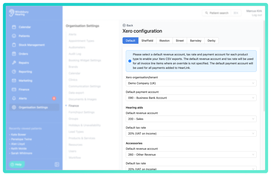 Once connected, you will be redirected to the Xero configuration page in HearLink.