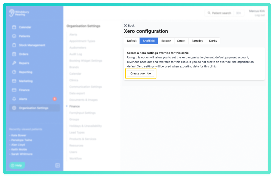 You can configure Xero as default settings for the whole of the organisation or create clinic overrides if necessary .