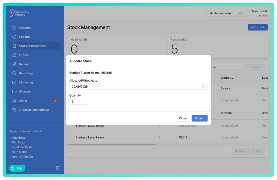 When allocating an accessory to a patient, a user can now allocate multiple accessories using the new quantity field.