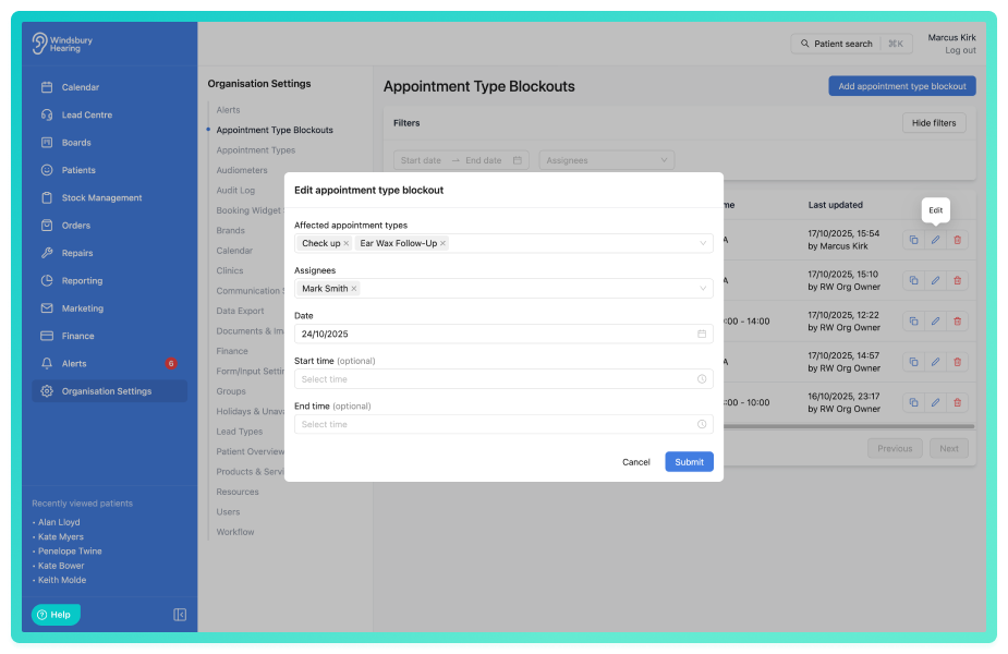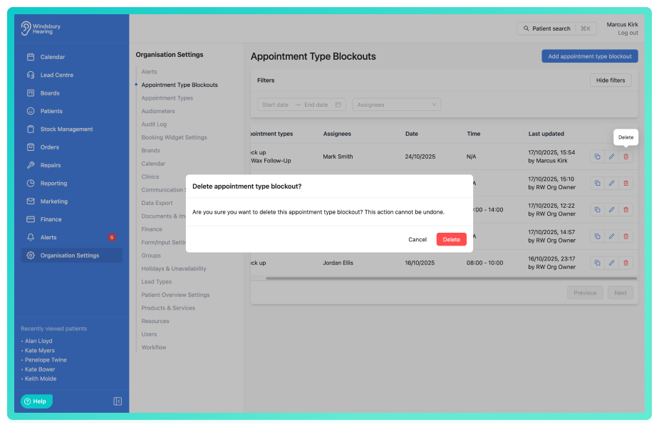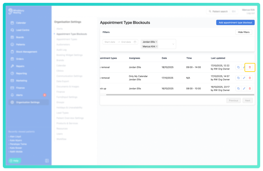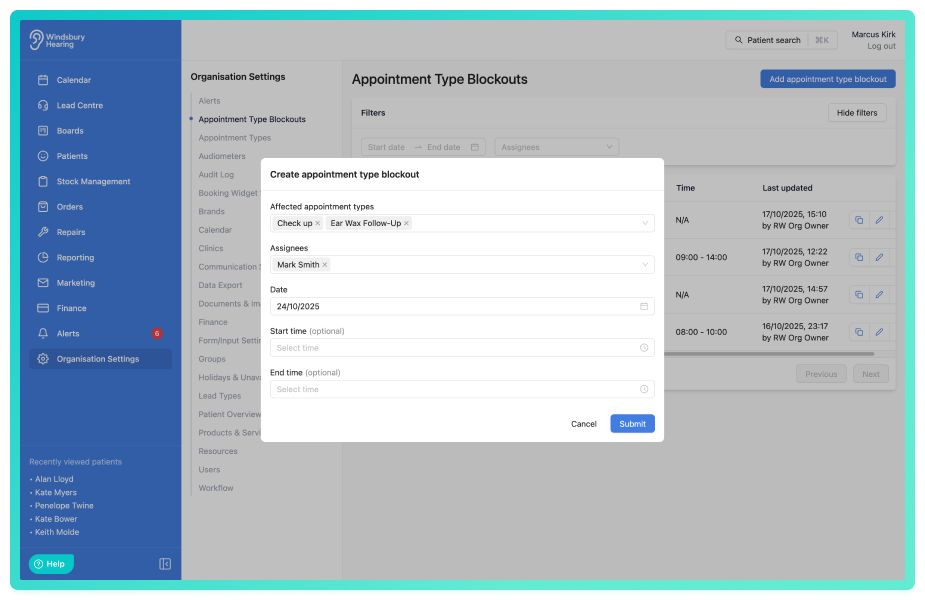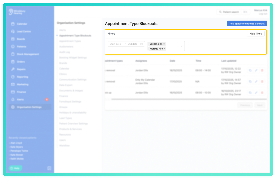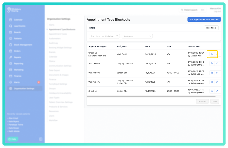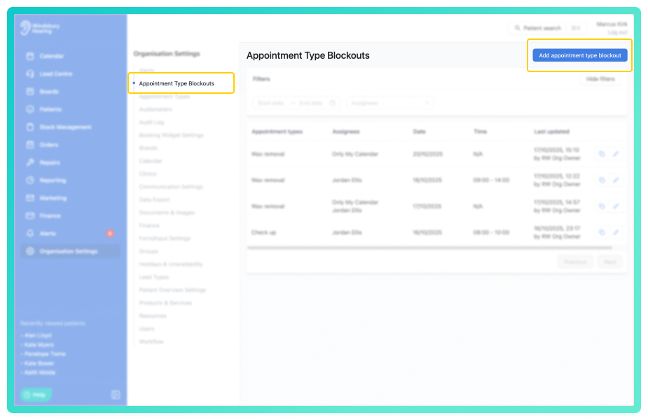 By using Appointment type blockouts, your organisation can manage clinician availability more effectively, preventing scheduling conflicts and maintain a smooth and accurate booking process.