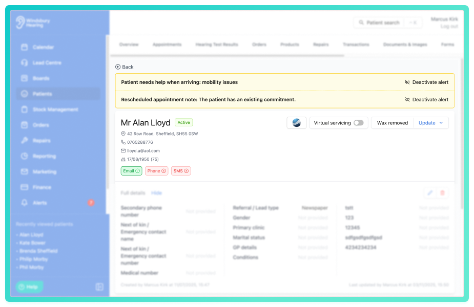 The patient note alert can now be displayed as the default pop up or as a banner across the top of the patient overview (as shown below). To change this setting head to Patient overview settings.