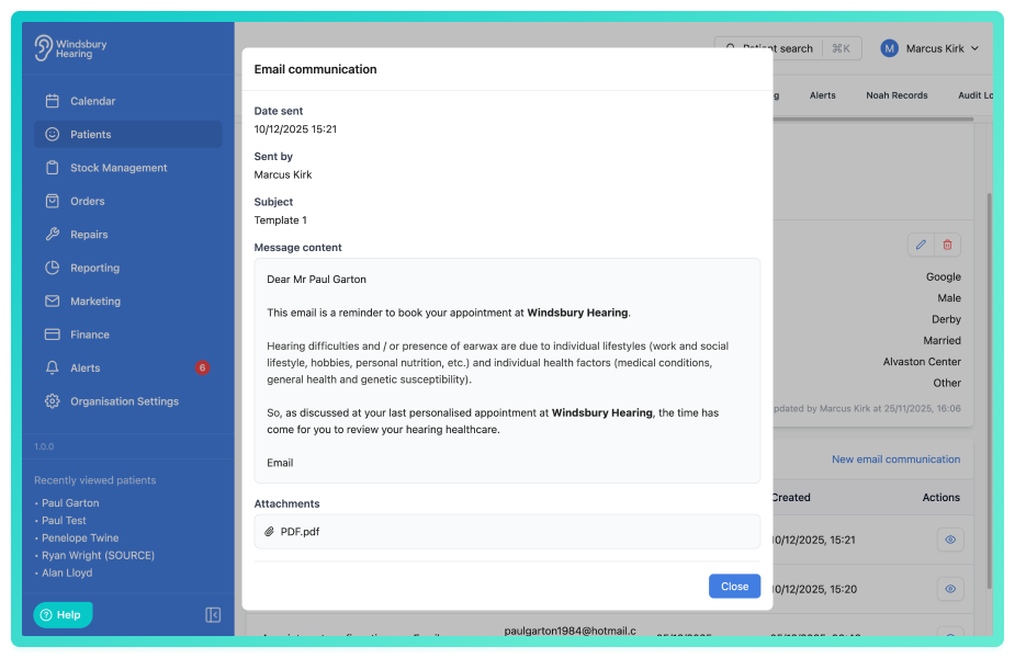 You can now view the full content of any email or SMS that has been sent to a patient, including who by and the date sent. This provides clear visibility of what was communicated, helping your team maintain consistent messaging, resolve patient queries more quickly and improve continuity across the organisation.