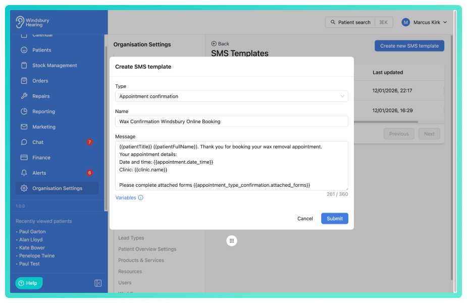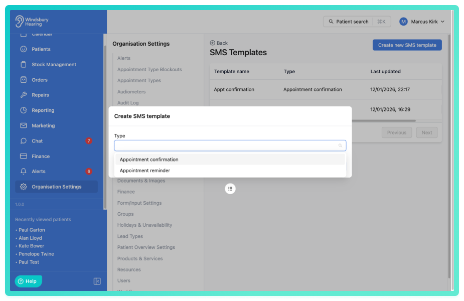 SMS templates allow your organisation to standardise the content used for appointment confirmations and reminders. By creating reusable templates, you ensure consistent messaging and reduce manual editing when configuring appointment communications.