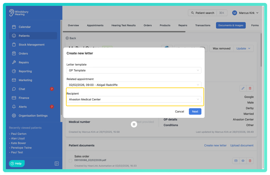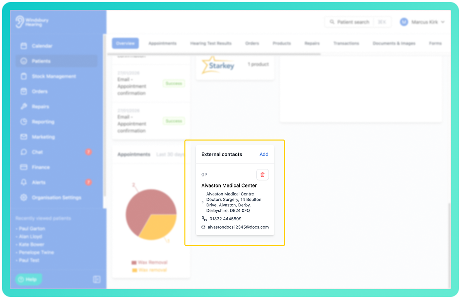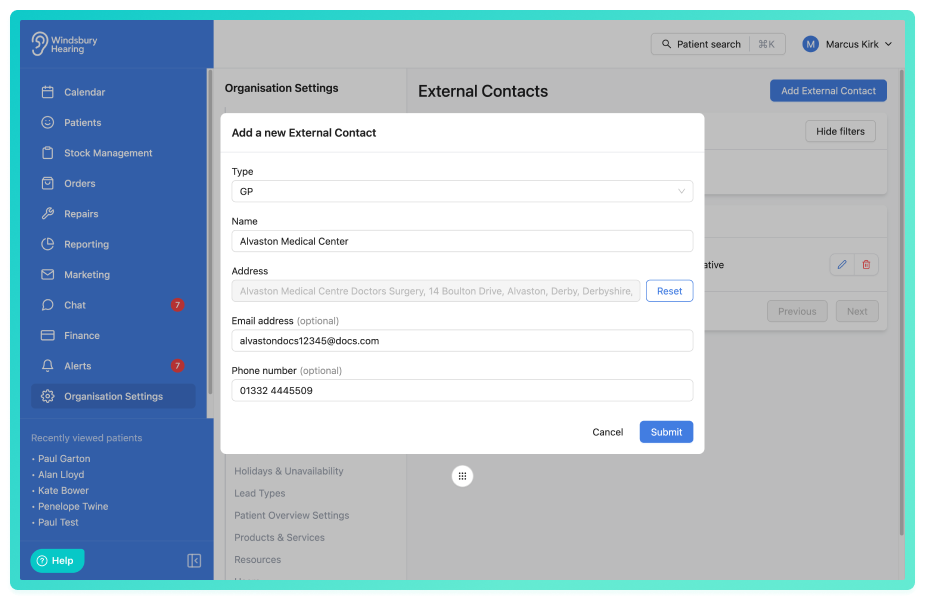 Organisations can now create and manage external contacts within HearLink. This allows you to store details for third parties such as GP's, legal representatives or insurers in one central place. External contacts can be added, edited or deleted from the new External Contacts section, making it easier to maintain contact records outside of patient profiles.