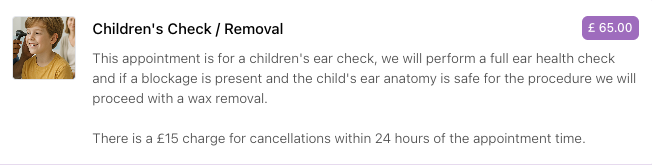 Ability to add images to clinics and appointment types, for display in the online booking widget: