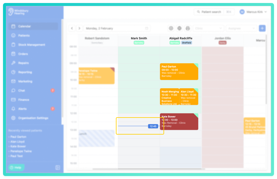 We've improved the calendar interaction by adding a hover time indicator. As you move your cursor over the calendar, you'll now see exactly what time slot you're on, making it quicker and more accurate to book and manage appointments.