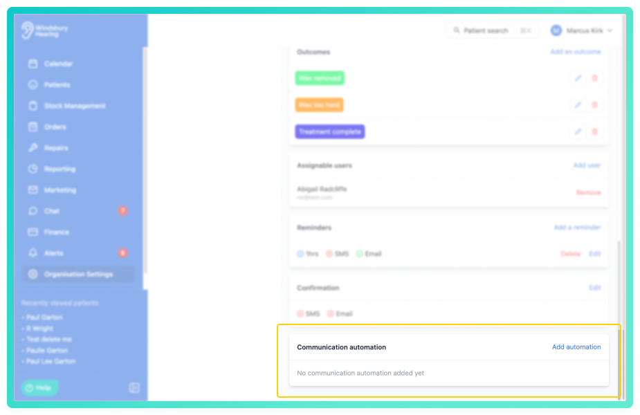 Only users with the correct permissions can set communication automations. If you think you should have permission to perform such an action please contact the organisation owner.