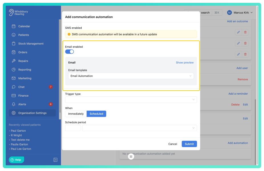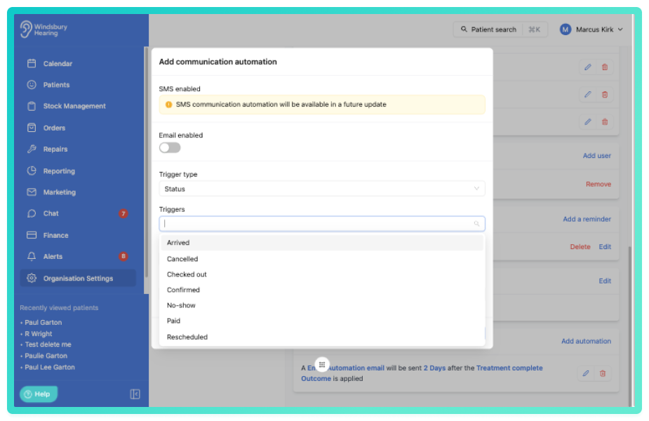 The communication automation applies only to the Appointment type it has been configured against and will run automatically each time the selected trigger conditions are met.