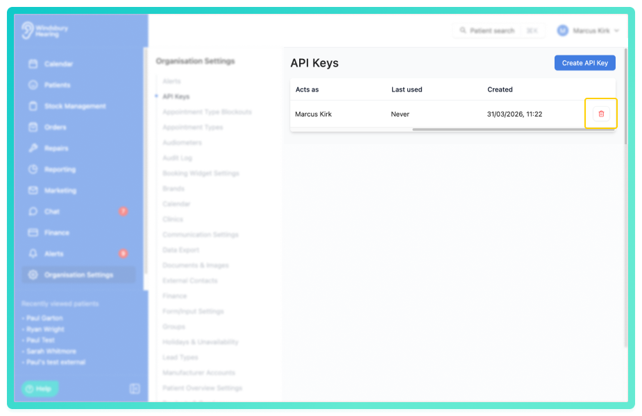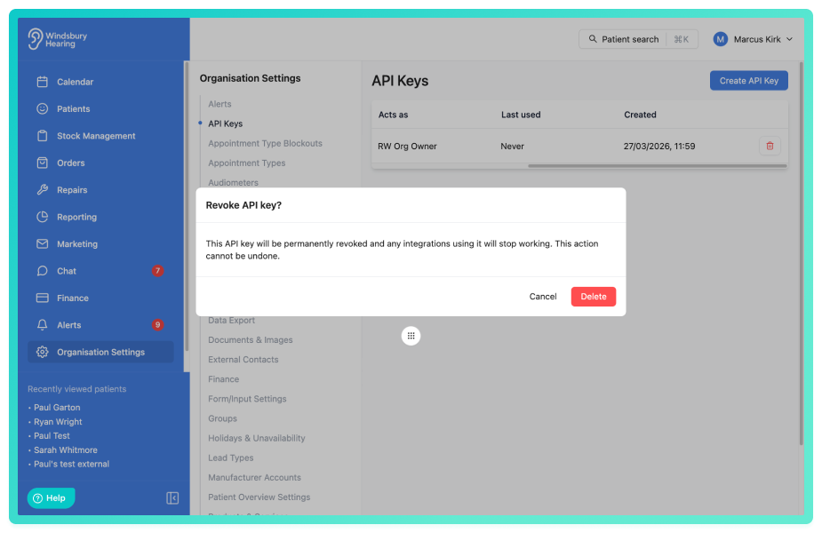 Warning: Once an API Key has been deleted this action cannot be undone. Please proceed with caution!